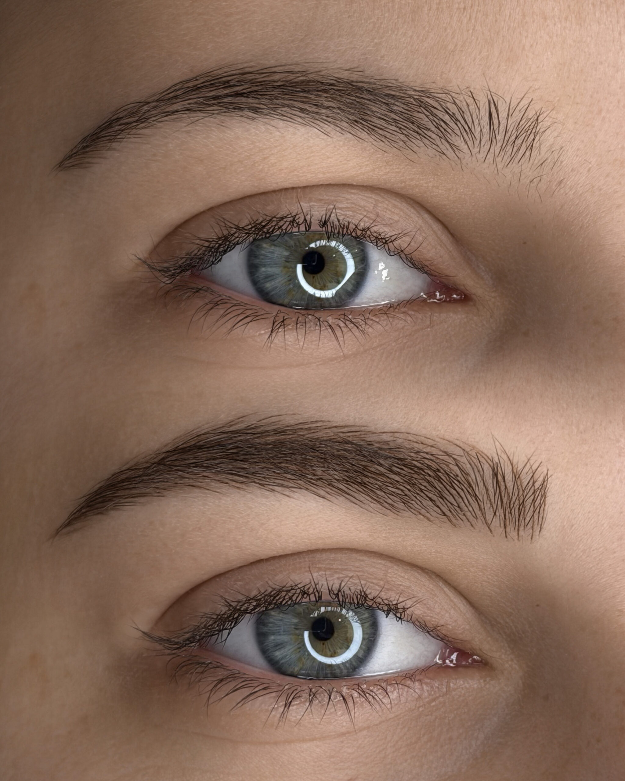 Оформяне на вежди с естествен резултат чрез прецизно подчертаване на чертите.